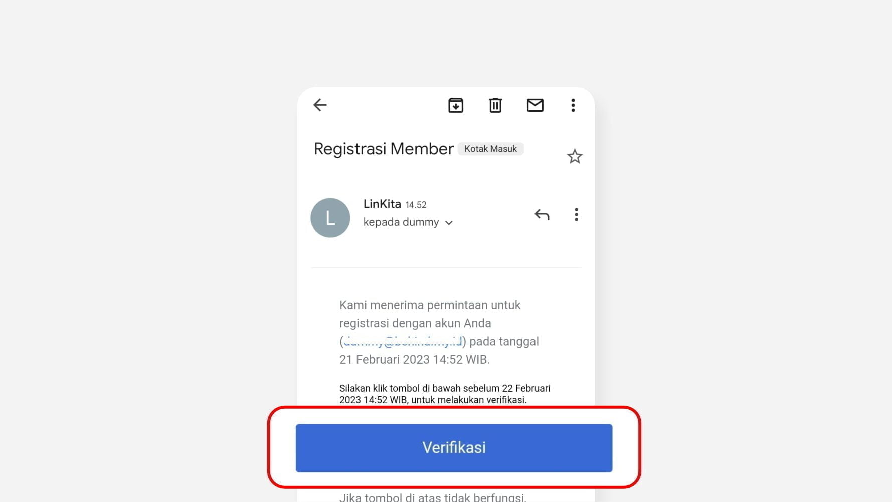 Silahkan masuk di email Anda, dan klik tombol verifikasi