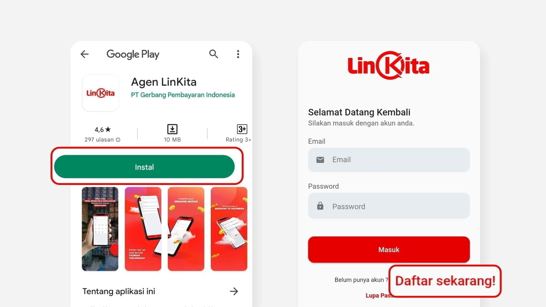 Untuk registrasi LinkPedia atau mendaftar jadi agen LinkPedia, silahkan Anda untuk download aplikasi dulu di google play store.